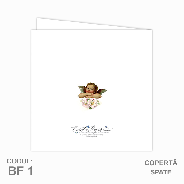INVITATIE BOTEZ FOLD (PLIATA), personalizata, confectionata din carton standard, velin de 300g, print digital fata/verso. Dimensiuni: 16x16 cm - inchisa, 32x16 cm deschisa. Printarea textului este inclusa în pret!