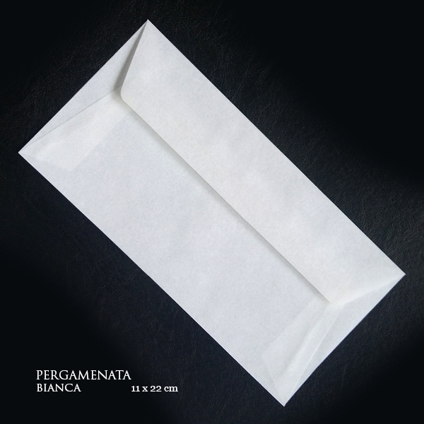 Plicuri confectionate din pergament alb. Pergamentul este o hartie clasica in slujba creativitatii. Duritatea, rigiditatea si rezistenta dau un ton oficial oricarei aplicatii in care aceste hartii sunt folosite. Trimiterile catre lumea veche sunt o provocare pentru designerii moderni care stiu sa ii exploateze potentialul.