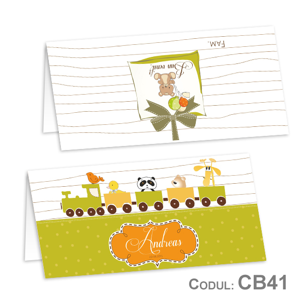 PLACE CARD personalizat integral, confectionat din carton velin, print digital, format desfasurat 15x11,5 cm, format inchis (pliat) 7,5x11,5 cm.