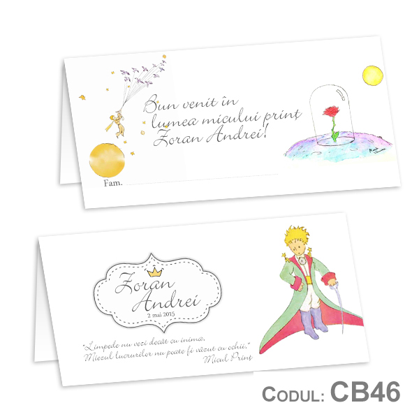 PLACE CARD personalizat integral, confectionat din carton velin, print digital, format desfasurat 15x11,5 cm, format inchis (pliat) 7,5x11,5 cm.