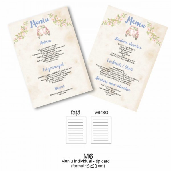 MENIU personalizat integral, confectionat din carton, print digital, color fata/verso.