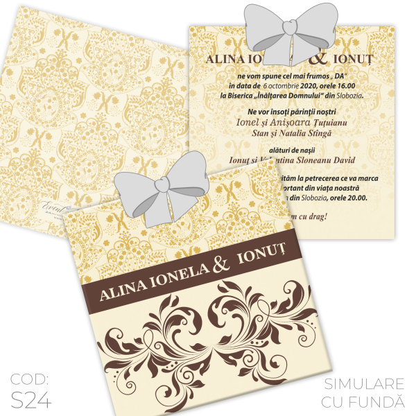 Invitație Nuntă S24 Elegantă Damask