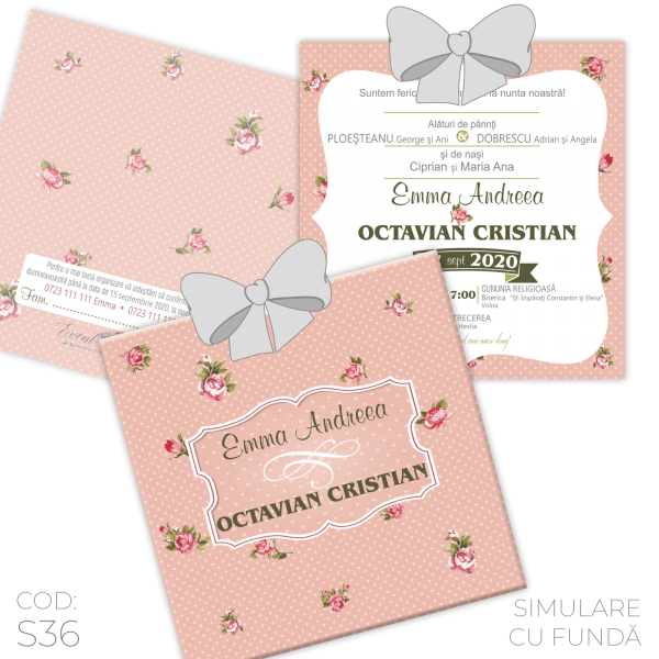 Opțiuni Disponibile: poți adăuga accesorii de tip fundă în partea superioară a cardului, unde se va efectua suplimentar o perforare pentru atașarea fundei