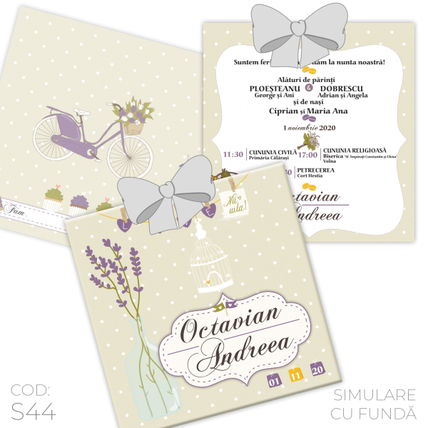 Invitație Nuntă S44 Shabby Chic Lavandă