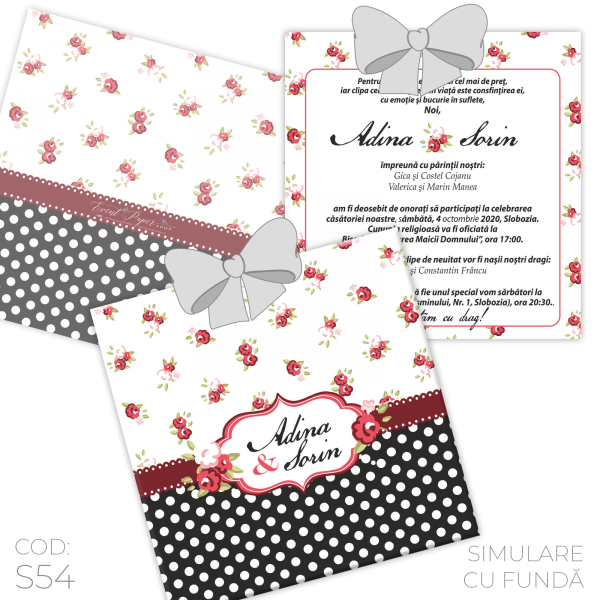-5% Invitație Nuntă S54 Shabby Chic Trandafiri