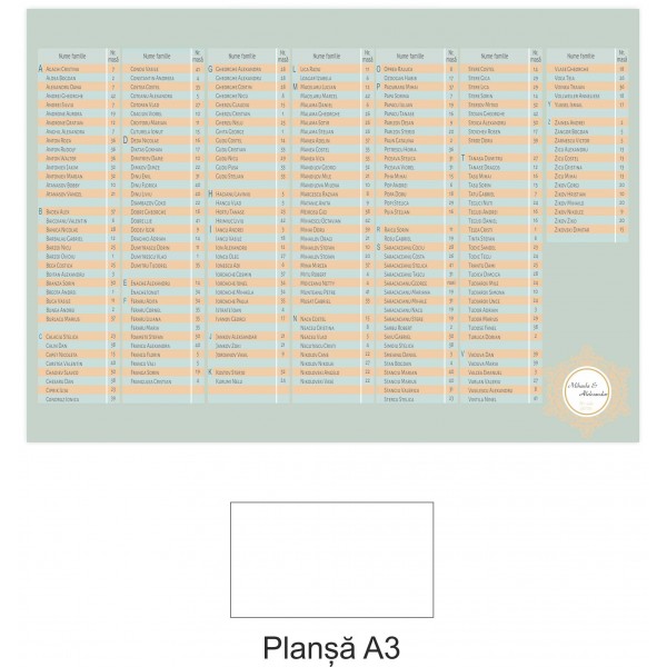 Plansa asezare oaspeti - alfabetic (A3)