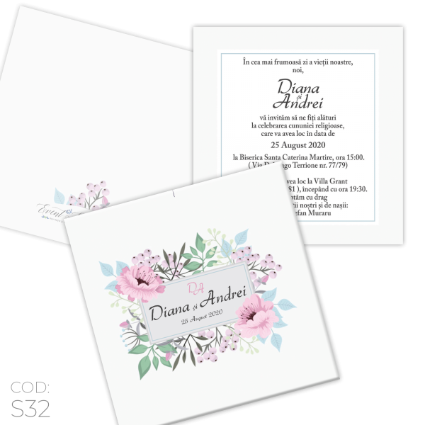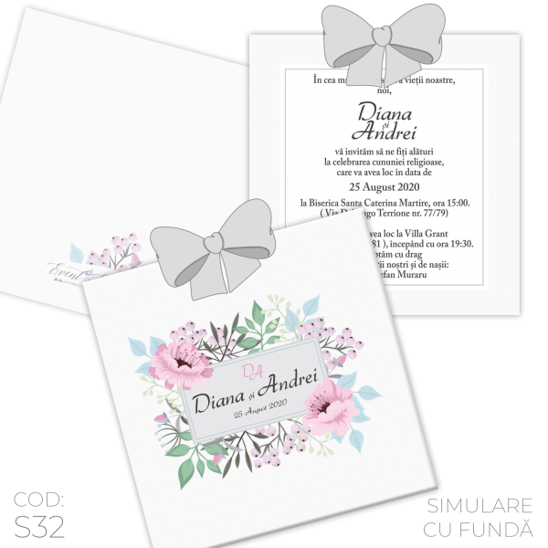 Invitație Nuntă S32 Floral Gray