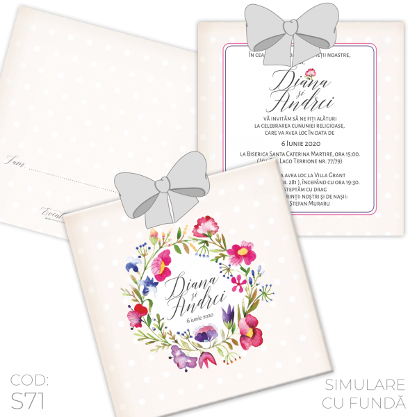 Invitație Nuntă S71 Floral Dots
