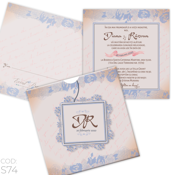 Invitație Nuntă S74 Vintage