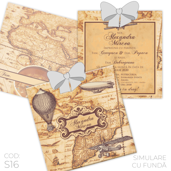 Modelul de Invitație Nuntă S16 Travel Air Balloons face parte din Gama SMART
