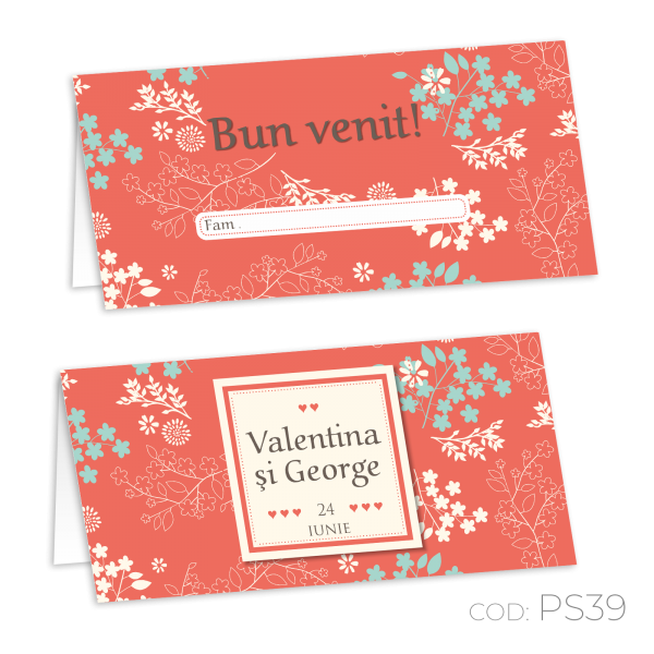 Componență de bază: 1 piesă, card cu două plieri cu spațiu prevăzut pentru a trece numele oaspeților