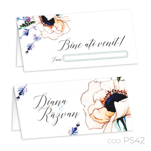 Componență de bază: 1 piesă, card cu două plieri cu spațiu prevăzut pentru a trece numele oaspeților