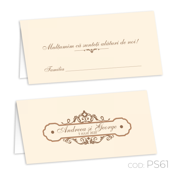 Componență de bază: 1 piesă, card cu două plieri cu spațiu prevăzut pentru a trece numele oaspeților