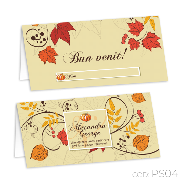 Componență de bază: 1 piesă, card cu două plieri cu spațiu prevăzut pentru a trece numele oaspeților